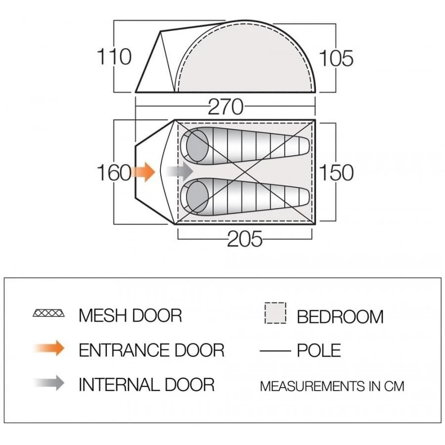 Deze mooi vormgegeven Alpha 250 CLR tent van Vango biedt voor twee personen ruime slaapplaatsen en met een hoogte van 110 cm kun je wellicht niet staan, maar qua zithoogte geeft het je een ruimtelijk gevoel. Naast het slaapgedeelte is er in de voorzijde van de tent ook plek voor je bagage. De Diamond Clear ramen zorgen voor veel licht, terwijl de Nightfall Bedroom Technology ervoor zorgt dat de slaapcabine verduisterd is. Je slaapt heerlijk donker en kunt zelfs eventueel uitslapen, wat heerlijk is tijdens je vakantie. Â